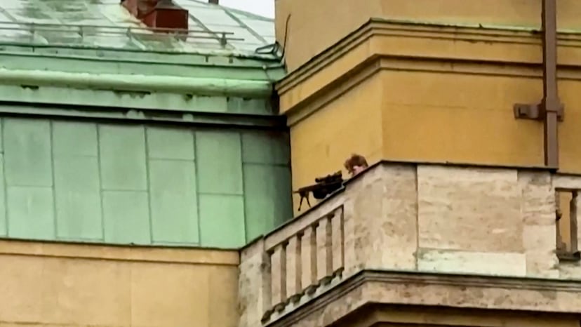 El tirador camina por un balcón de la Universidad Carolina de Praga, apunta hacia la calle y abre fuego en múltiples ocasiones. El vídeo que acompaña a esta noticia muestra al estudiante de 24 años que disparó el jueves en la facultad de Filosofía y Letras del centro educativo checo y dejó 14 personas muertas y 25 heridas, 10 de ellas muy graves.