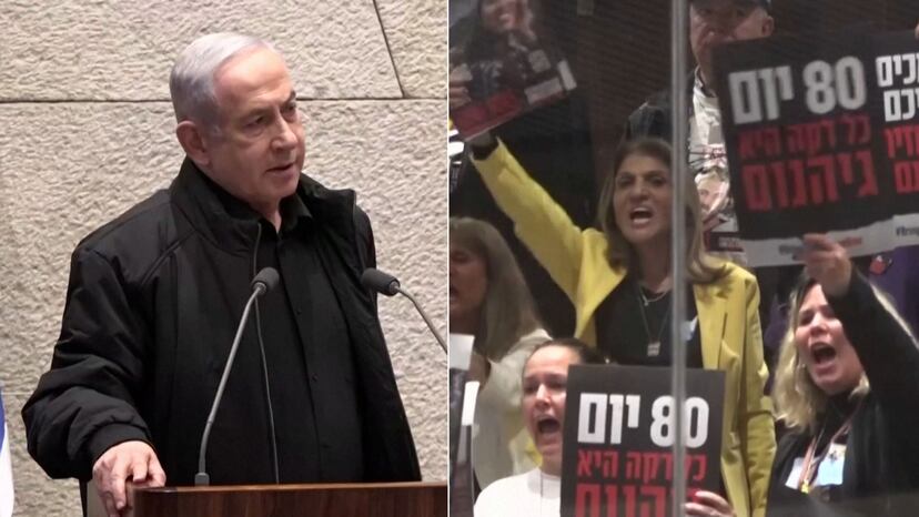Vídeo | Momento en el que familiares de los rehenes abuchean a Netanyahu en el Parlamento