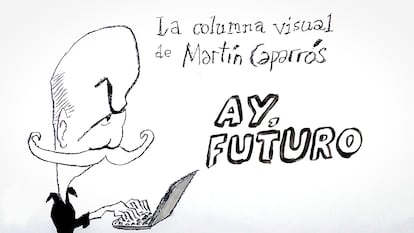 El periodista y escritor Martín Caparrós y el humorista Miguel Rep, protagonizan un encuentro presencial con los lectores sobre su reciente serie de columnas visuales Ay, futuro. El evento, que se celebra este miércoles en Taller de Ideas (Madrid), estará moderado por la periodista Marcela Campos, que invitará al público a reflexionar sobre los diferentes temas que se han planteado en la columna visual, como el amor, la comida, la inteligencia artificial o el poder.