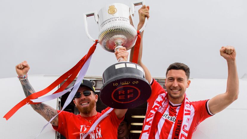 Los capitanes del Athletic Club han sido los encargados de descender del avión alzando la Copa
