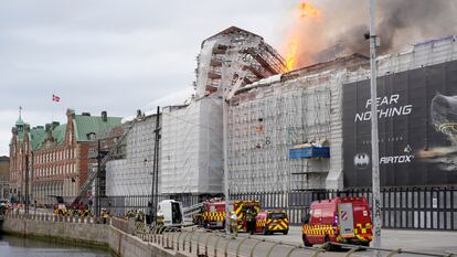 Arde la Bolsa de Copenhague. El fuego ha afectado a una gran parte del edificio histórico, conocido como Borsen en danés, y ha provocado el derrumbe de su icónico chapitel. El inmueble, situado en la capital de Dinamarca, es una de las grandes atracciones turísticas del país. Por el momento, no hay información sobre si hay o no víctimas del incendio. En el vídeo que encabeza esta noticia, se ven las primeras imágenes de cómo el edificio histórico, cuya construcción fue completada en 1640, ha ardido.