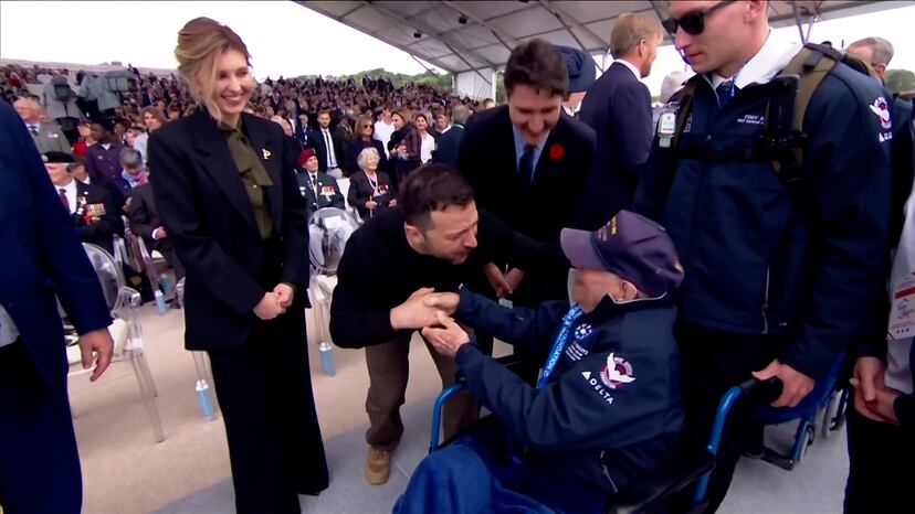 El presidente ucranio, Volodímir Zelenski, recibió un emotivo abrazo de un veterano durante la conmemoración del 80º aniversario del desembarco del Día D en Normandía. El veterano, que también se reunió con el primer ministro canadiense Justin Trudeau, vivió un momento especialmente conmovedor al besar la mano de Zelenski y llamarle “salvador del pueblo”.