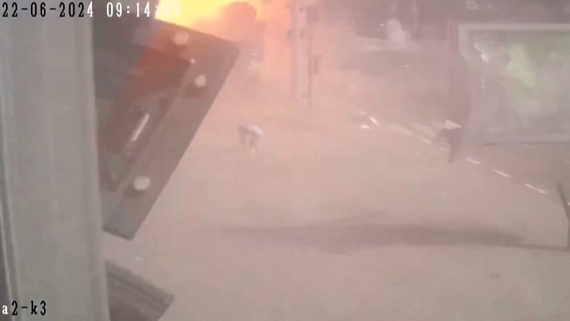 Una cámara de seguridad muestra el momento en el que una mujer escapa de la explosión provocada por una bomba rusa al impactar contra un bloque de viviendas en Járkov, la segunda ciudad más grande de Ucrania. El vídeo que acompaña a esta noticia, muestra el momento en el que la explosión rompe ventanas y hace que los escombros salten por los aires. En el ataque contra un edificio de viviendas se han utilizado bombas guiadas, según ha denunciado el presidente Zelenski tras el suceso. El mandatario ucranio ha matizado que Rusia ha lanzado más de 2.4000 bombas de este tipo sobre Ucrania durante el mes de junio y ha pedido a sus aliados Occidentales más apoyo para combatirlas.