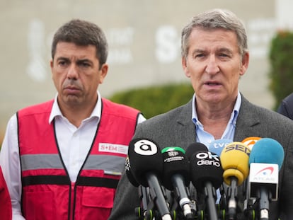 El presidente valenciano, Carlos Mazón, agradece al jefe del Ejecutivo su “cercanía” y “respuesta tan rápida” mientras que el líder del PP, Alberto Núñez Feijóo, responsabiliza al Gobierno central de un posible fallo de los protocolos