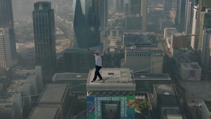 Un atleta cruza Dubái sobre una cuerda a 224 metros de altura