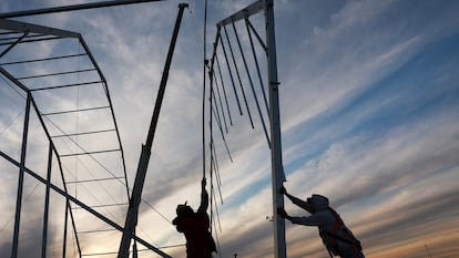 El martes por la tarde, los trabajadores descargaron largos soportes metálicos de los remolques de tractores estacionados cerca del Río Bravo, que separa la ciudad de El Paso, Texas.