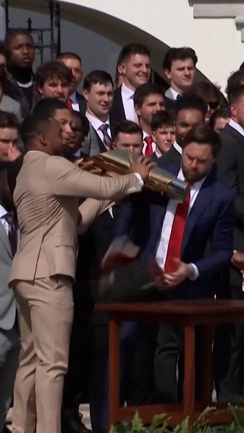 Risas incómodas en la Casa Blanca: el momento en el que a JD Vance se le cae el trofeo de los Ohio State Buckeyes