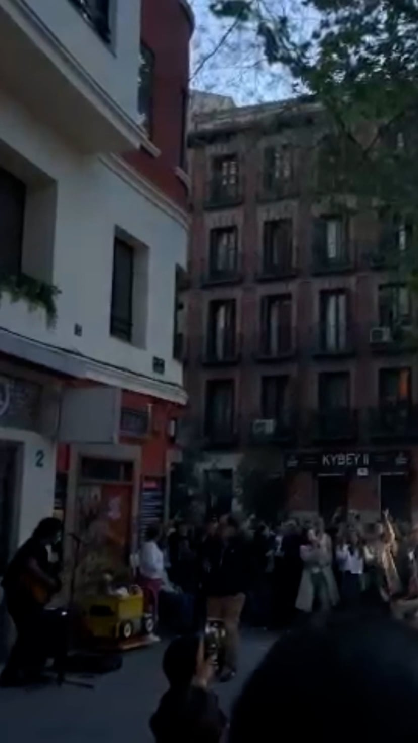 Los vecinos de la plaza de Olavide de Madrid improvisan un festival en pleno apagón