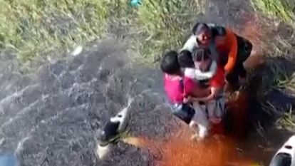 El momento del rescate a los cinco tripulantes de una aeronave accidentada en el departamento de Beni, en BoliviaFoto: VICEMINISTERIO DE DEFENSA CIVIL DE BOLIVIA | Vídeo: EPV