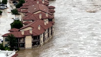 Las imágenes aéreas captan las fuertes crecidas cerca del puente de Austin, que se suman a los estragos ocurridos en el resto del Estado
