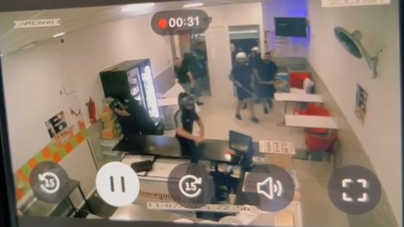 Impedidos por el fuerte dispositivo policial desplegado en el interior de Torre Pacheco la noche del domingo, los grupos ultras optaron por realizar ataques dirigidos en la periferia del municipio murciano. El más grave tuvo lugar en un local de kebabs. Alrededor de las 23.00, un grupo de hombres vestidos de negro, con cascos de moto y armados con bates y palos, irrumpió y destrozó el establecimiento, según muestran las imágenes de la cámara de seguridad.