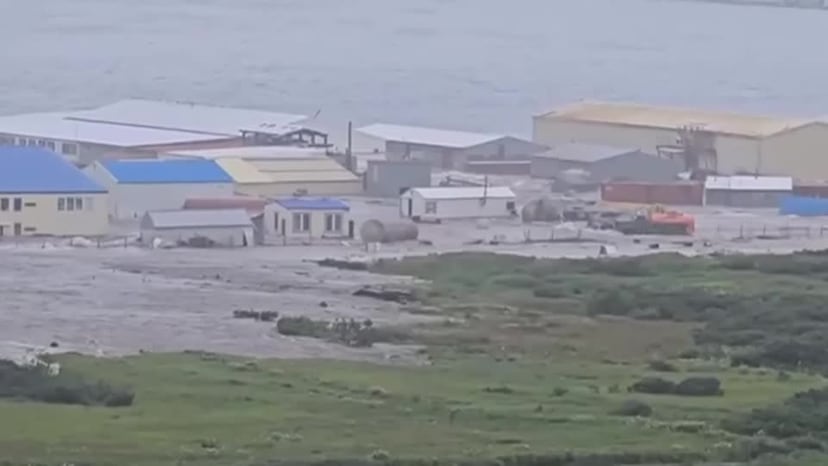 La grabación de un testigo muestra como el agua del mar penetra en la tierra en Severo-Kurilsk, en la región de Sajalín