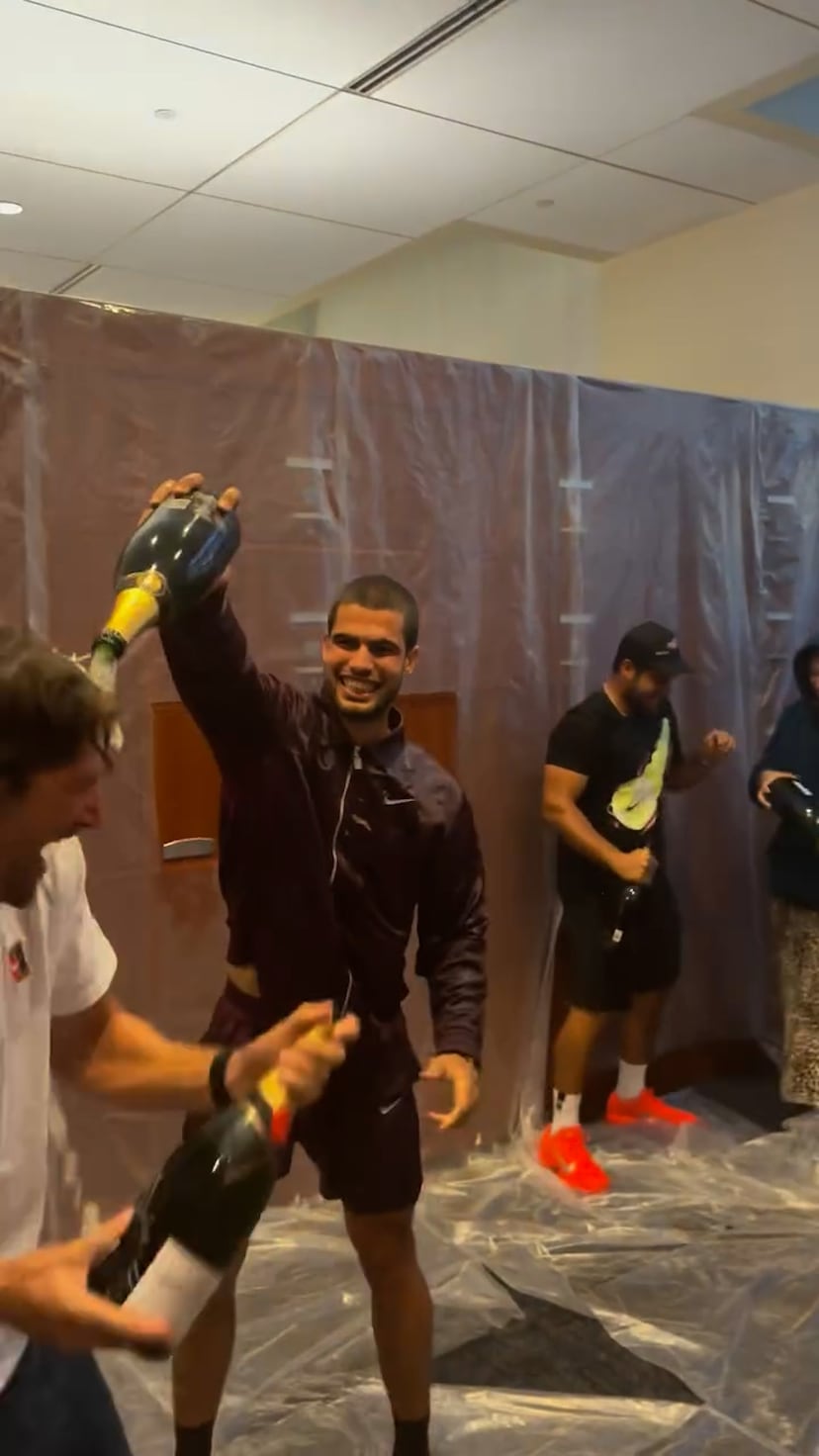 El vídeo de la celebración de Carlos Alcaraz con su equipo tras ganar el US Open ante Sinner