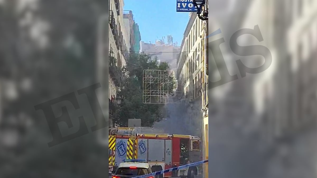 VÍDEO | DERRUMBAMIENTO EDIFICIOSLas imágenes de los instantes posteriores al derrumbe de un edificio en MadridUn testigo graba la polvareda y la llegada de los servicios de Emergencias a la calle HilerasEl País07 oct 2025 - 15:08CESTCompartir en WhatsappCompartir en FacebookCompartir en TwitterCompartir en BlueskyCompartir en LinkedinIr a los comentariosMás informaciónAl menos tres heridos y cuatro desaparecidos en el derrumbe de un edificio en obras en el centro de Madrid: “Noté un temblor terrible”Patricia Ortega Dolz / Álvaro Sánchez-Martín | MadridEl desplome parcial de un bloque de viviendas sociales en Nueva York obliga a desalojar a los vecinosMaría Antonia Sánchez-Vallejo | Nueva YorkArchivado EnDerrumbamiento edificiosComunidad de MadridMadridEmergenciasSamurSucesosAmbulancias