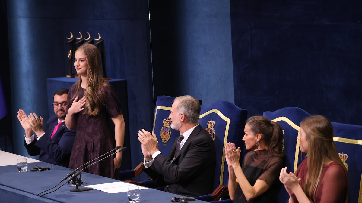 La princesa Leonor, el Rey Felipe VI, la Reina Letizia y la infanta Sofia durante la ceremonia de los Premios Princesa de Asturias 2025 celebrados en el Teatro Campoamor, a 24 de octubre de 2025.Foto: Raúl Terrel / Europa Press