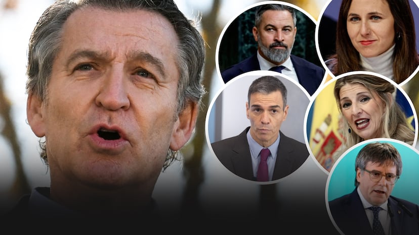 Del PP a Junts, pasando por Bildu y Sumar, Feijóo ha aprovechado su discurso en la concentración contra Sánchez en Madrid para interpelar a todos los partidos con representación en las Cortes