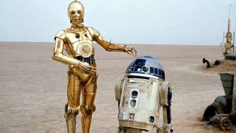 A la izquierda, el actor Antony Daniels, que interpretó al androide C-3PO. A la derecha, el robot R2-D2.