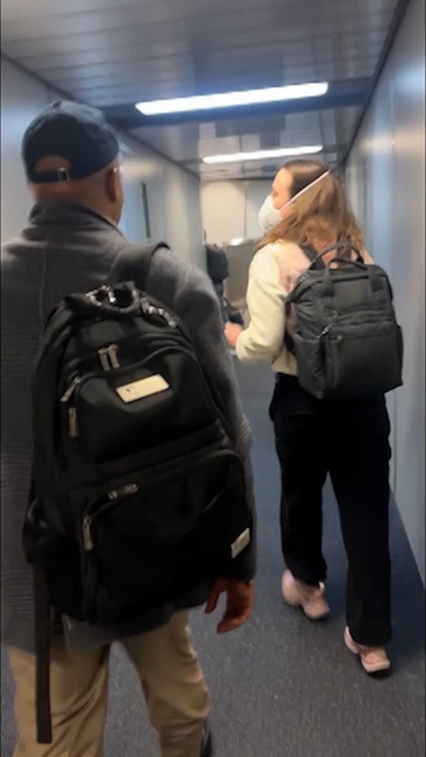 El exalcalde de Nueva York, Eric Adams, en el aeropuerto Internacional de Dallas-Fort Worth, mientras una pasajera le increpa, el 12 de enero de 2026.Vídeo: EPV