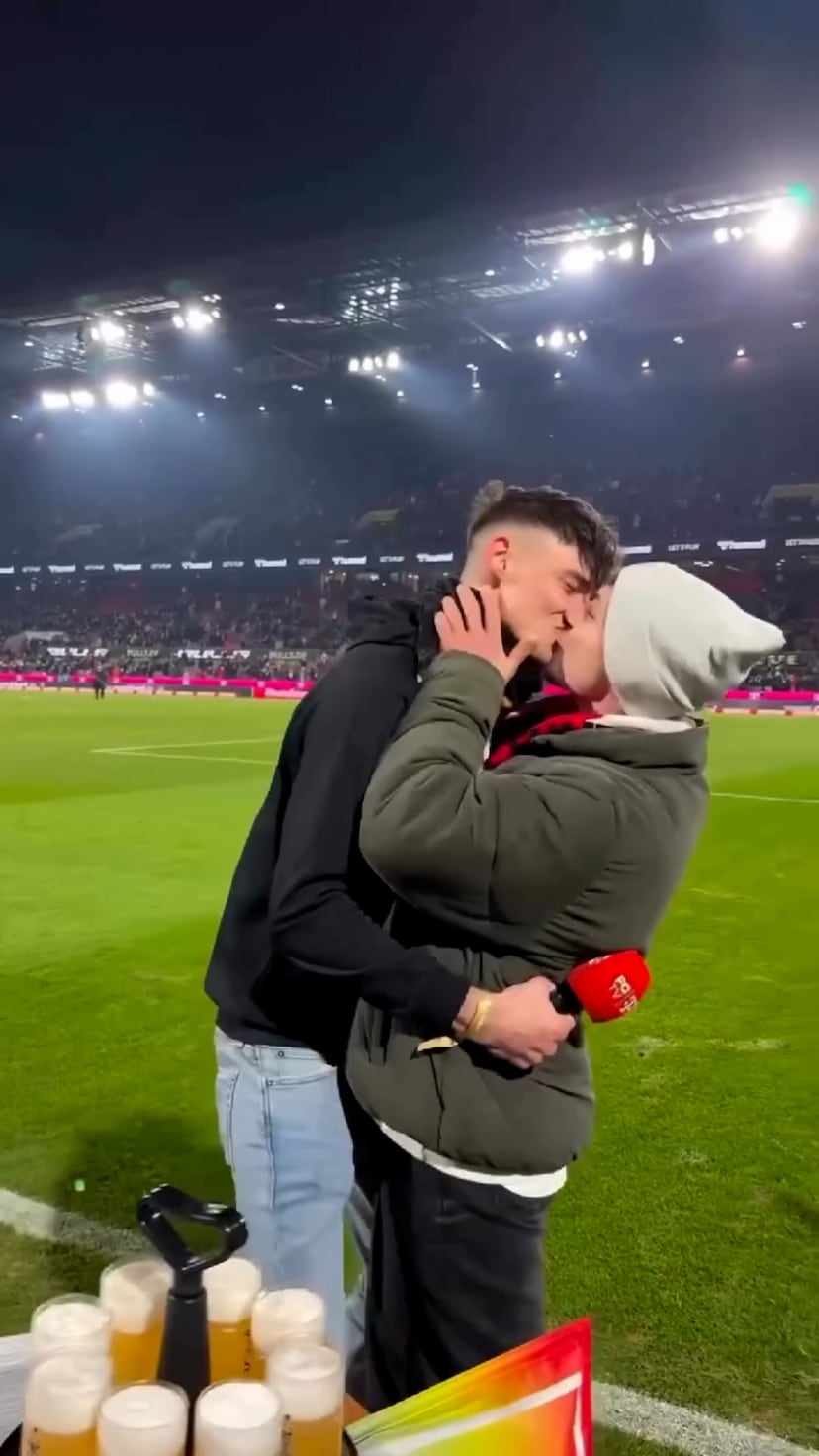 El árbitro Pascal Kaiser besa a su novio tras pedirle matrimonio en la previa de un partido de fútbol de la Bundesliga. Vídeo: RRSS