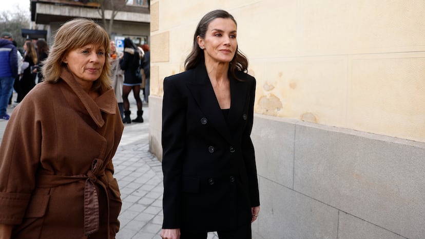 La reina Letizia, junto a su secretaria Marta Carazo, a su llegada a la capilla ardiente por Fernando Ónega situada en la Casa de Galicia de Madrid, este miércoles.Foto: José Oliva | Vídeo: EPV