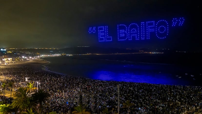 Quevedo ha anunciado este lunes que publica "esta semana" de su tercer álbum, 'El Baifo', y lo ha hecho con un espectáculo de drones que ha congregado a miles de personas en Las Palmas de Gran Canaria.Foto: Ángel Medina G (EFE) | Vídeo: EPV