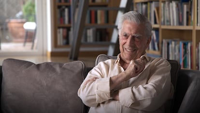 Mario Vargas Llosa (Arequipa, Perú, 1936) ríe enérgicamente en muchos momentos de la conversación. Sus carcajadas son sonoras y envolventes, de las que se contagian sin querer. Hace dos meses, el coronavirus le encadenó a la cama de un hospital, pero está completamente recuperado. A sus 86 años, el premio Nobel no para. En abril publicó un ensayo sobre Pérez Galdós, acaba de volver de la Feria del Libro de Buenos Aires y ya planea su próxima novela. Lo que más sorprende, sin embargo, es la lucidez que mantiene al revisitar el pasado. “En todos los países en los que he vivido: Francia, Inglaterra, España…, he procurado encontrarme en casa vinculándome a sus libros. Gracias a esto nunca me he sentido un extranjero”, explica en el vídeo de este nuevo episodio de En la biblioteca de.