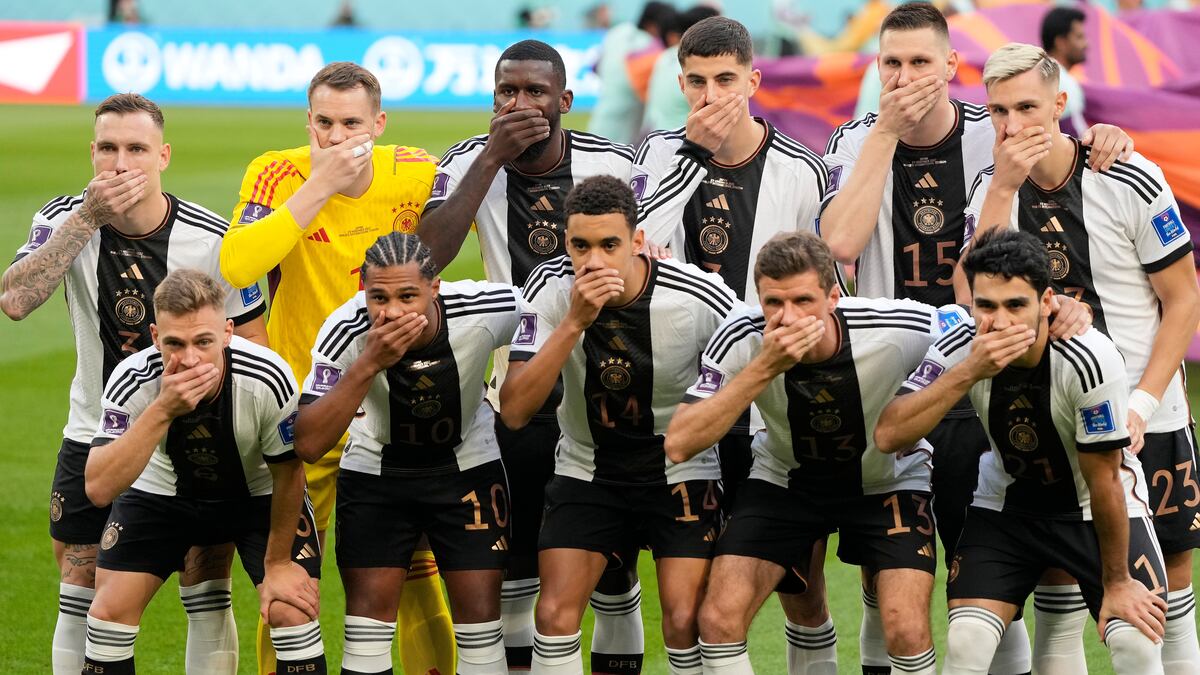 Los futbolistas de la selección de Alemania mostraron su descontento con la FIFA con una poderosa imagen en el posado inicial: con la mano cubriendo la boca. El organismo que rige el fútbol mundial vetó el brazalete one love, que pretendía concienciar sobre la situación de los derechos humanos en Catar, en particular del colectivo LGTBI+ y la Mannschaft ha contestado con ese gesto de equipo silenciado justo antes de enfrentarse a Japón en su debut, que acabó con derrota. “Una vez acabada la función de Infantino, ahora es el turno de los futbolistas”, ha señalado Ramon Besa, periodista de EL PAÍS, durante su intervención en el programa Fútbol Sapiens, de Universo Mundial.