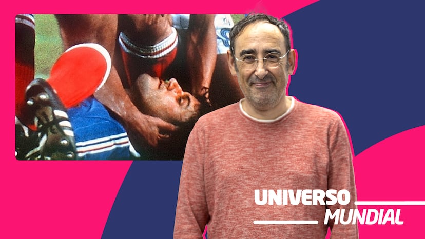 Los asistentes a la semifinal del Mundial de España de 1982 entre Francia y Alemania Federal fueron testigos de una de las faltas más fuertes que se haya visto. Toni Schumacher, el portero germano, “atropelló” al defensa galo, Patrick Battiston, le tiró tres dientes y le ocasionó una pequeña fractura en la columna cervical. En el vídeo, Eduardo Iturralde explica la situación y aunque está de acuerdo en que debía ser una tarjeta roja y penalti, entiende el por qué fue una decisión difícil. “Es una roja clarísima, un juego brusco, grave, no va ni al balón ni a nada”, remarca.